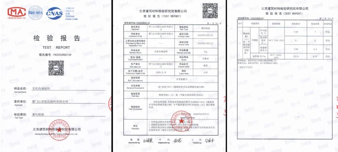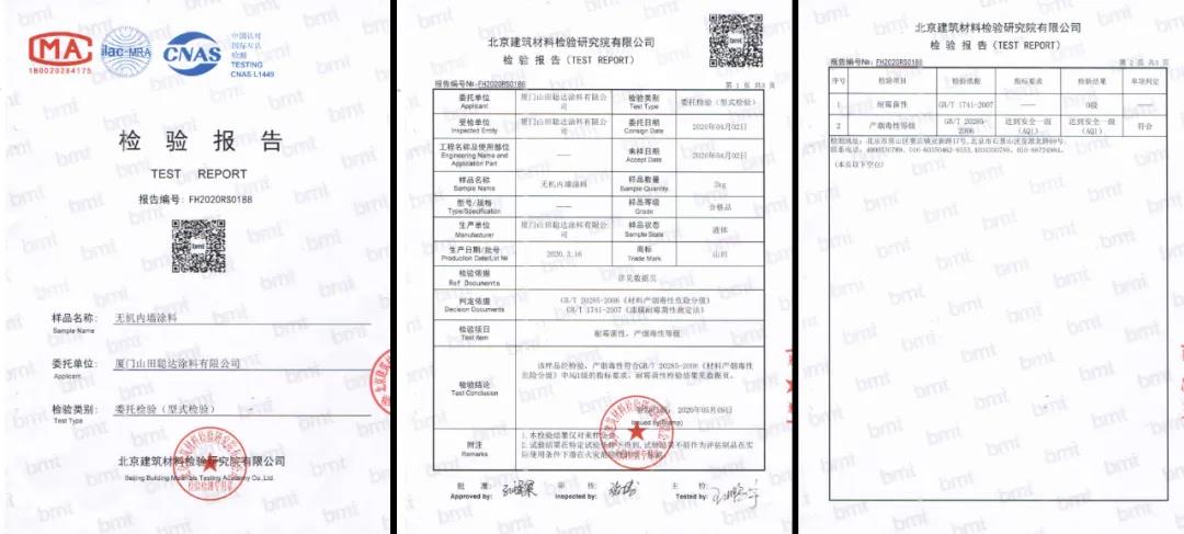 山田无机涂料:原材料采用天然矿物质,经过高温高压研磨等工序制成的,本身不含有害物质,从源头上杜绝了甲醛、苯、VOC等有害物质的侵害,是符合绿色环保发展趋势的高科技产品。