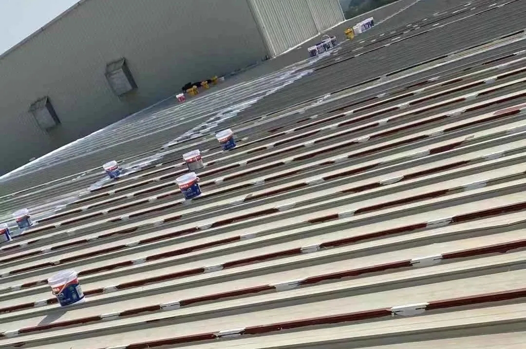 第一道打磨除锈;第二道用聚酯布修补铁皮生锈漏洞;第三道涂刷山田水性防锈漆;第四道表面清扫;第五道喷涂山田屋面隔热防水涂料(二遍)。