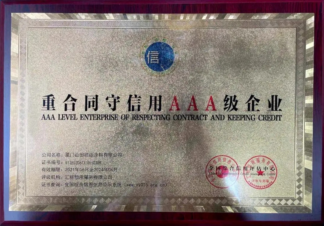山田水漆在多年来的经营活动中,始终把“重合同守信用企业”当做企业发展的基石,深信在激烈的市场竞争中,企业信用的好坏,将会直接影响企业的发展和口碑。无论是在合同订立、履行、变更等过程中,都严格遵守契约内容。