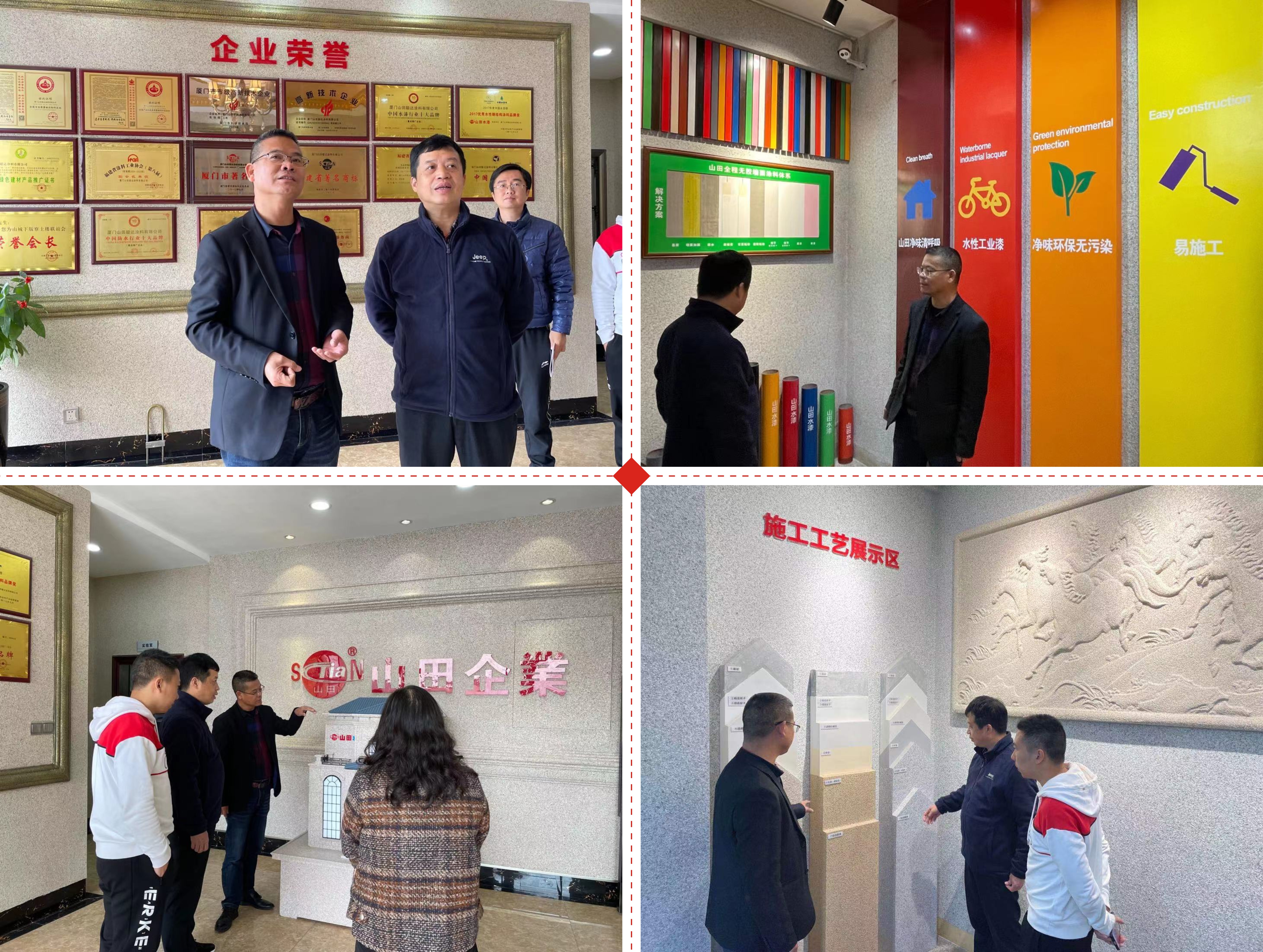 郑添水副总经理一行对山田水漆的环保产业、先进技术、科技研发、自动化设备、智能制造给予了高度赞赏,山田水漆致力于研发环保、节能、防火、防腐等新型水性涂料产品,为客户创造健康舒适美好的生活环境。