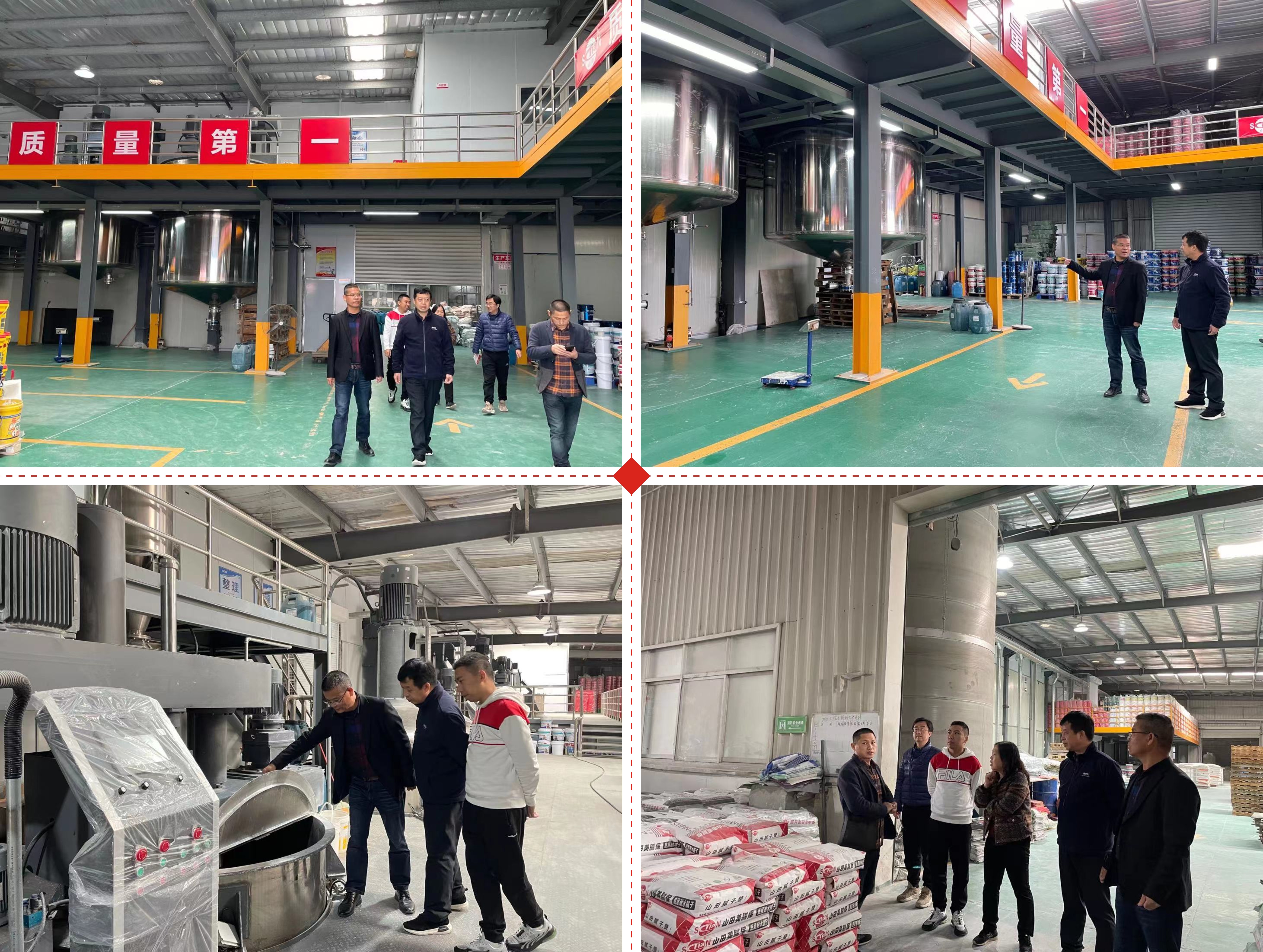 随后在刘总的陪同下,参观了我公司全自动化生产线设备,郑添水副总经理对我公司的经营理念和车间6S管理方式认可:自动化程度高,从投料、混合、到灌装一体化,智能制造高质量发展,同时减少员工劳动强度,为员工创造了一个良好的工作环境,同时也提高了企业的工作效率。