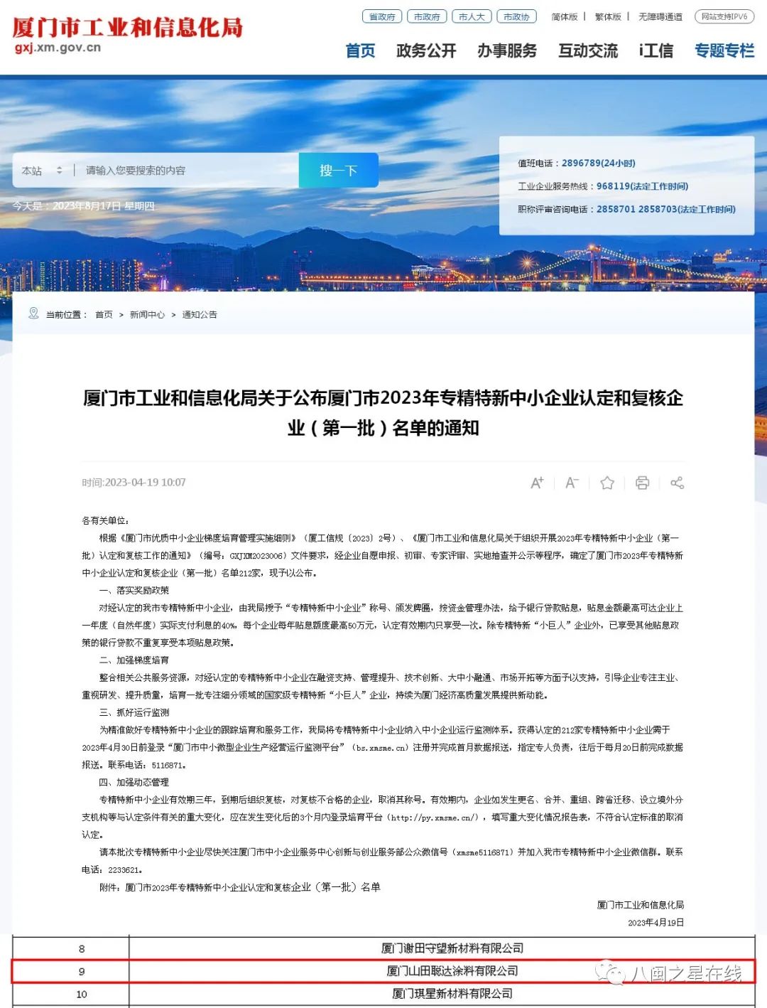 日前,厦门山田聪达涂料有限公司(简称:山田水漆)传来喜讯:凭借领先的创新理念、超前的市场意识,新产品、新技术的研发应用,诚信可靠的服务赢得了良好的社会声誉和行业口碑,各类产品畅销全国。公司成功荣获厦门市工信厅评审认定的2023年厦门市“专精特新”企业荣誉称号。这是政府部门及专业机构对山田水漆在专业化、精细化、特色化、创新能力和发展潜力的充分肯定及认可。山田水漆将继续在数字经济领域,持续深耕,打造精品,精益求精,谋求创新。