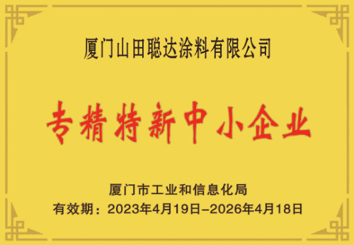 品牌领跑 再创佳绩丨山田水漆:荣获厦门市专精特新中小企业称号!